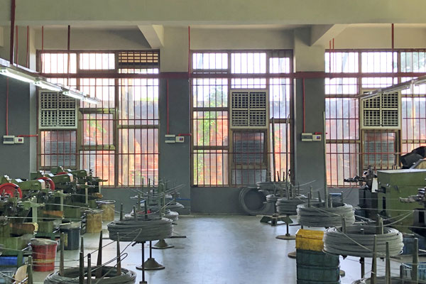 各个车间生产设备多,发热源多,人员分布比较散,夏季车间的温度通常都在35℃以上。在外部气温升高时,最高可达40℃。车间人员工作时,异味非常大,空气不流通,高温闷热,严重影响了员工的工作情绪,同时增加了招聘难度。